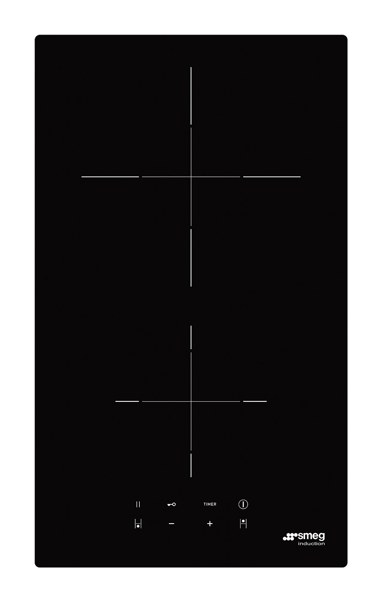 SMEG DOMINO INDUKCIÓS FŐZŐLAP, Universal design, 30 cm, 2 főzőzóna, egyenes él, fekete üveg