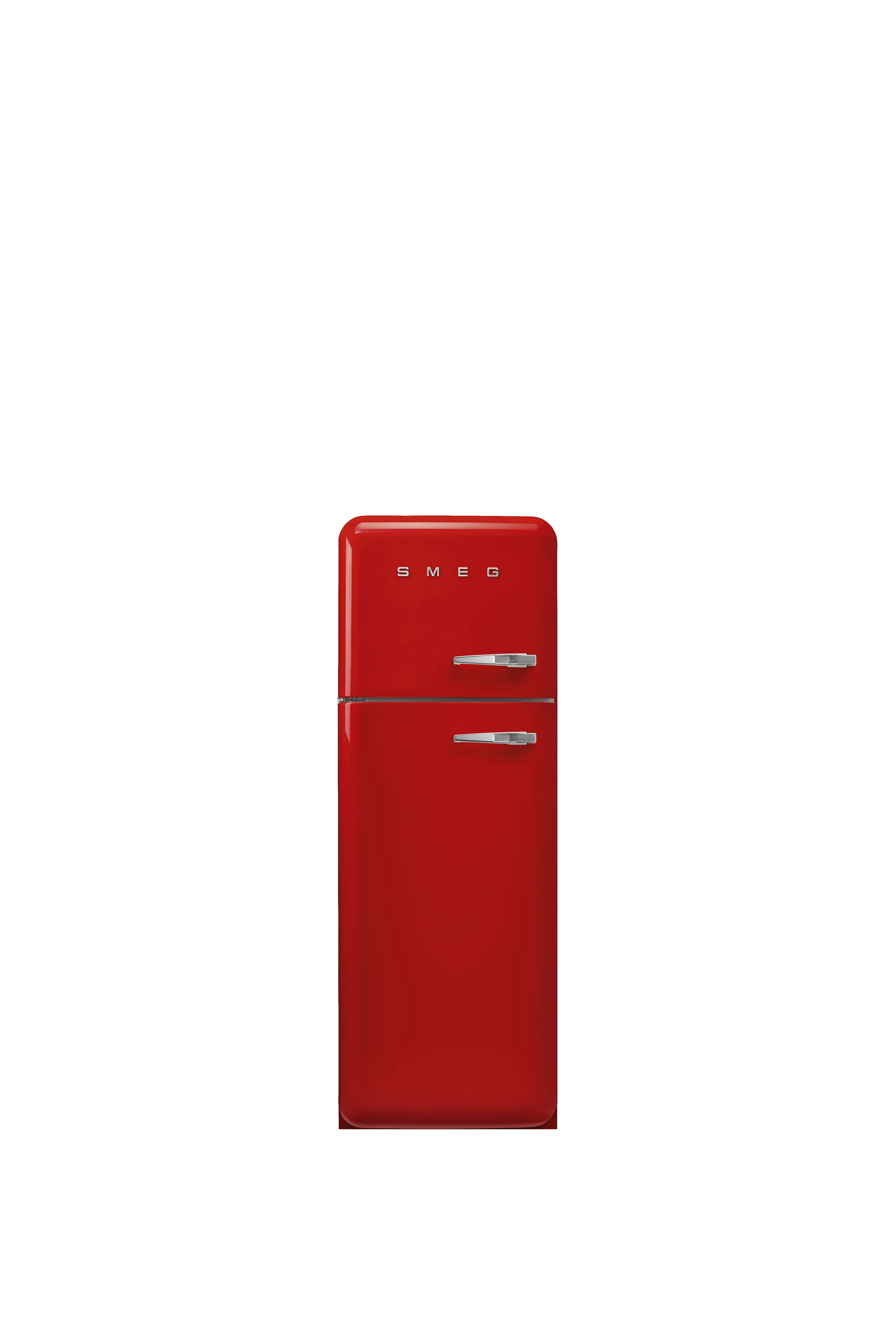 SMEG KOMBINÁLT HŰTŐ ÉS FAGYASZTÓ, 50-es évek retro design, 60,1 cm széles, 172 cm magas, 2 ajtós felülfagyasztós, 222+72 l űrtartalom, bal oldali pántok, piros