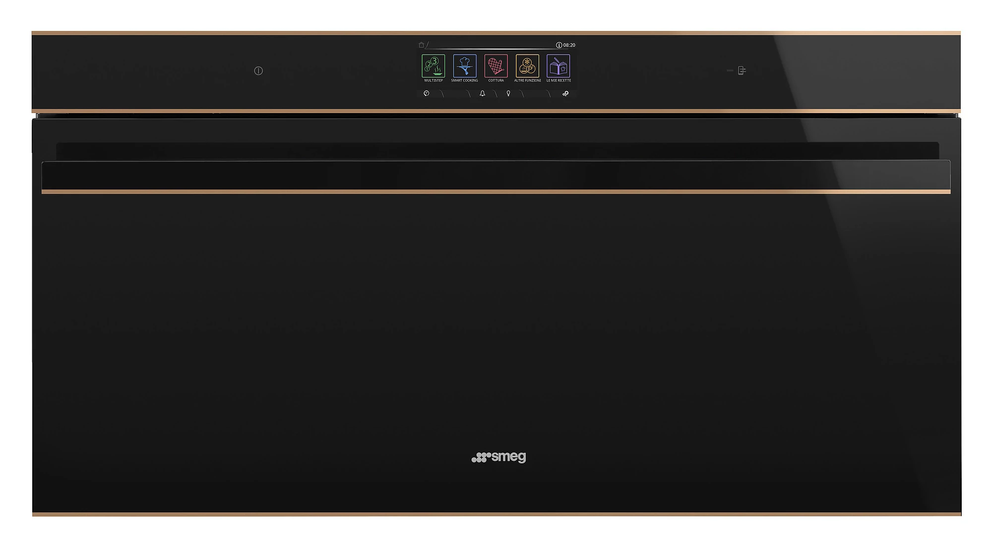 SMEG PIROLITIKUS HŐLÉGKEVERÉSES XL SÜTŐ, Dolce Stil Novo design, 90x47,5 cm, nagy TFT, fekete üveg, réz dísz